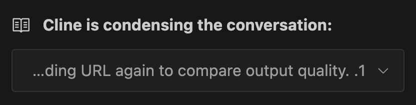 - Trust its memory. Between Cline’s compression and Sonnet’s self-written state, you rarely need to restate requirements.